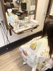 お子様のカットをする際はipadの貸し出しもさせて頂いておりますので、好きな動画を見ながらカットする事も可能ですし